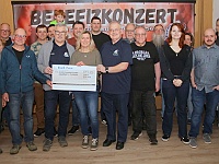 Groß war die Freude bei der Spendenübergabe des fantastischen Spendenerlöses von 13.800 Euro beim Benefizkonzert im Sportheim Altheim-Böckweiler bei (von links) Iris Kunkel, Elke Kohl, Reiner Albrecht, Thomas Blatt, Maurice Eickhoff, Oliver Meiser, Beno Meiser, Hubert Schewes, Michael Schieber, Anja Schieber, Christian Fischer, Klaus Port, Wolfgang Kohl, Mike Schmitt, Volker Loeckelt, Sophie Reutel, Susanne Luup, Florian Rauch, Matthias Huppert und David Sandmeier (Bildrechte: Wolfgang Degott)